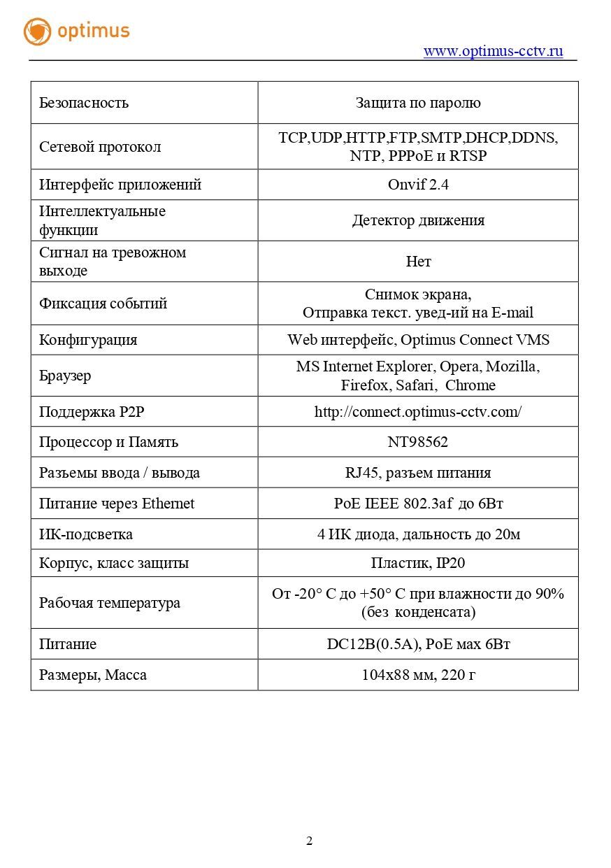 Видеокамера optimus ip-e024.0