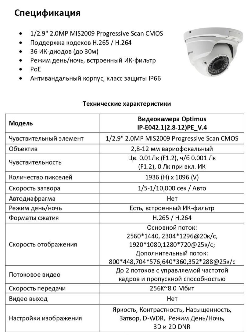 Видеокамера Optimus IP-E042.1(2.8-12)PE_V.4