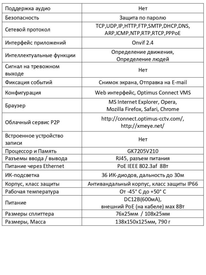Камера выполнена в антивандальном корпусе степенью защиты IP66. Рабочая температура от -45°С до +50°С.