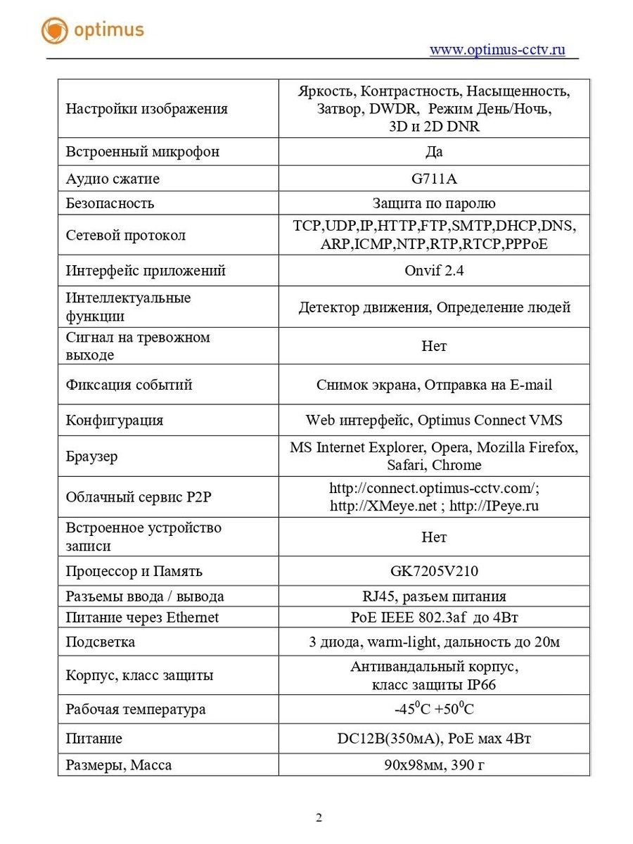 Купольная IP-видеокамера Optimus IP-E042.1(2.8)MPF создана на основе 1/2.8" SC223А Progressive Scan CMOS, разрешением 2 Мп (1928 (H) x 1088 (V)).