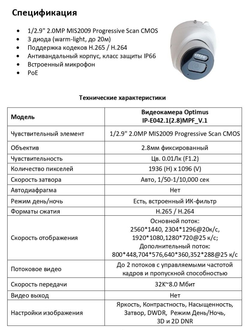 Видеокамера Optimus IP-E042.1(2.8)MPF_V.1