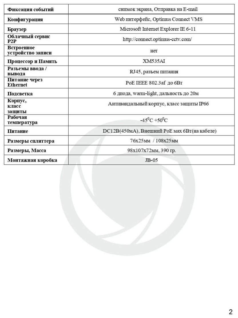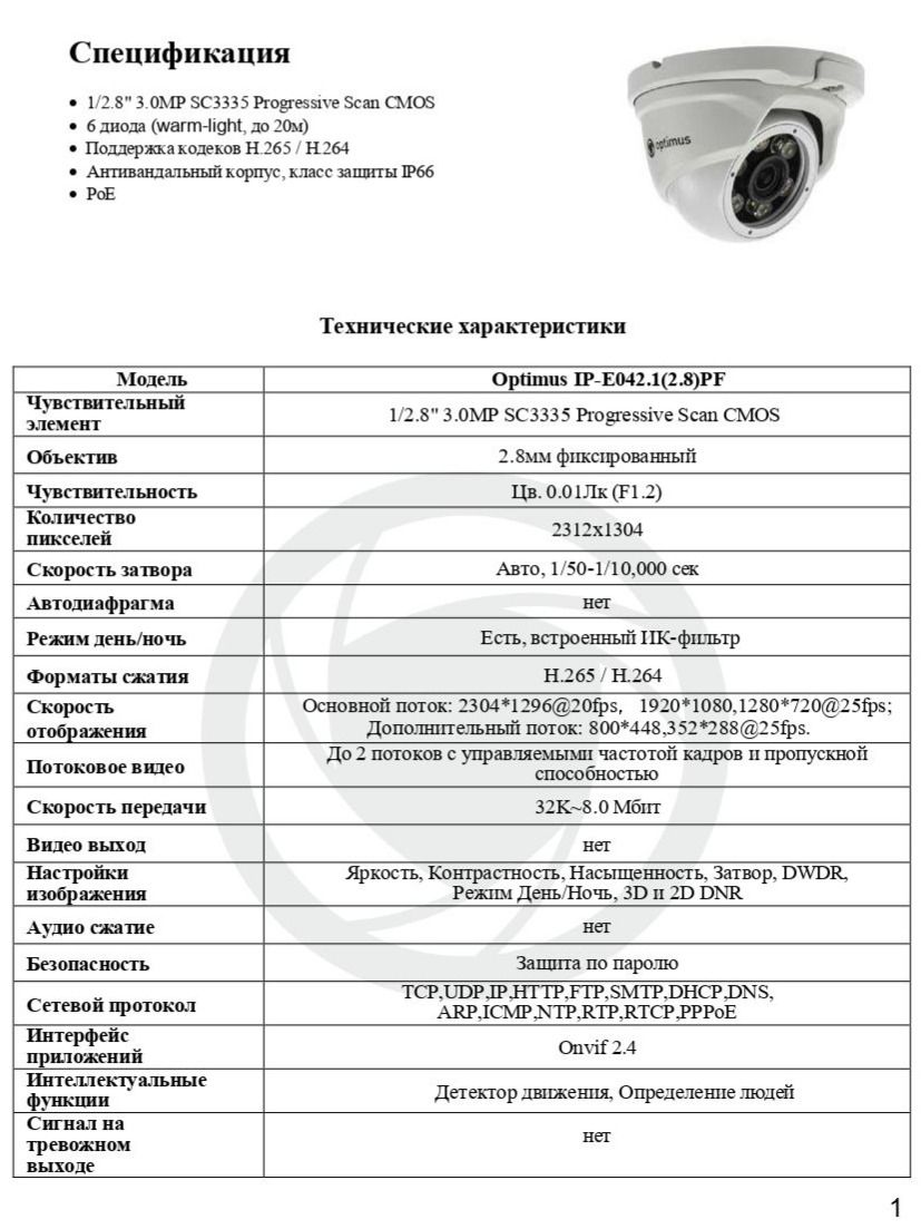 Уличная IP-видеокамера Optimus IP-E042.1(2.8)PF создана на основе 1/2.8" 3.0M SC3335 Progressive Scan CMOS.