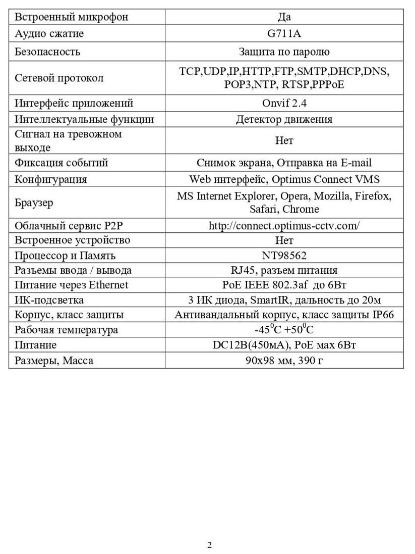 Камера выполнена в антивандальном корпусе степенью защиты IP66. Рабочая температура от -45° С до +50° С