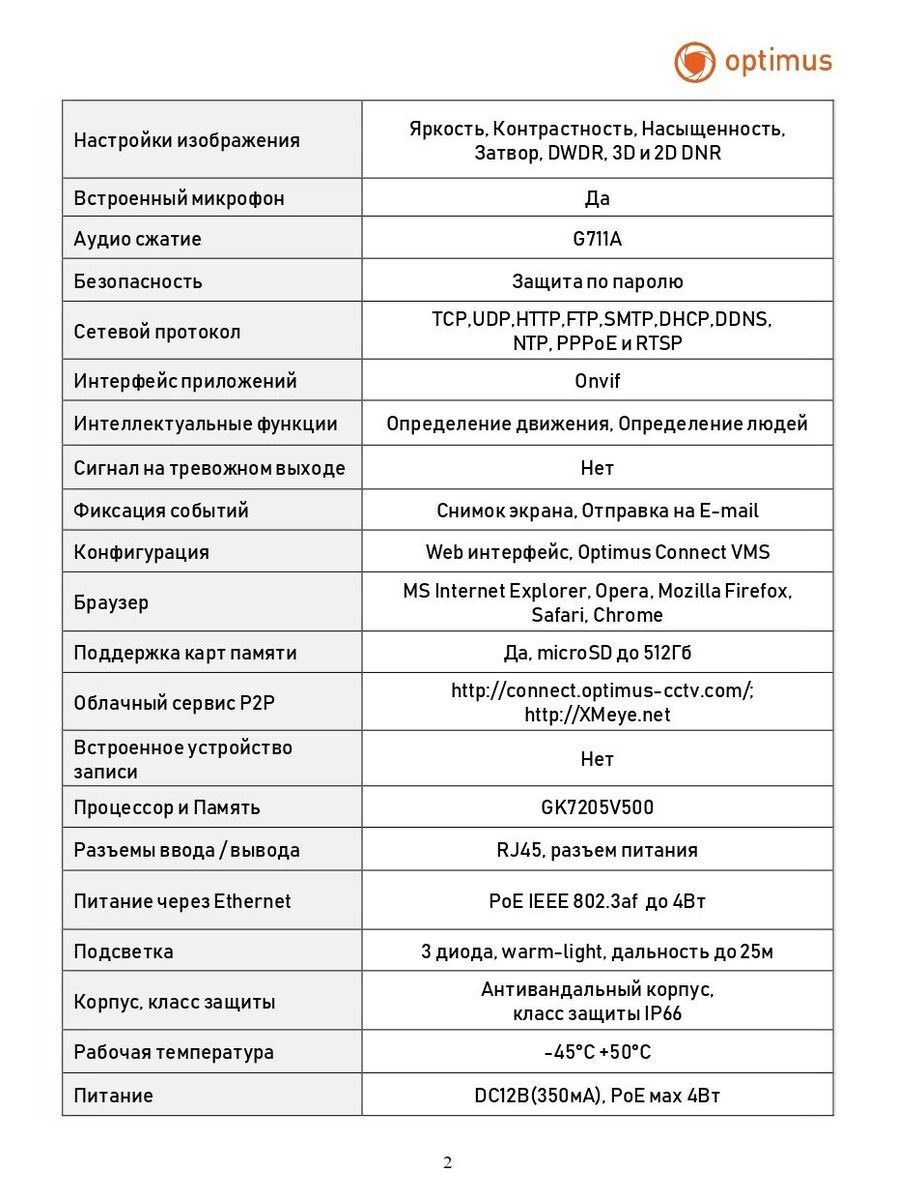 Видеокамера Optimus IP-E044.0(2.8)MPCF_V.1