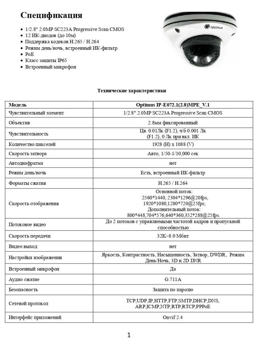 Видеокамера Optimus IP-E072.1(2.8)MPE_V.1