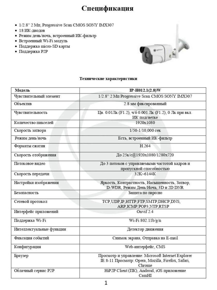 Поддерживает интерфейс Onvif, P2P и Micro-SD карту до 128 Гб (не ниже 10 класса)