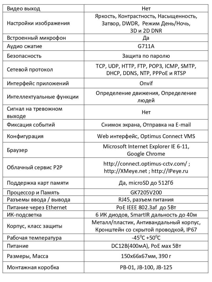 Камера выполнена в металлическом антивандальном корпусе со степенью защиты IP67. Рабочая температура от -45°С до +50°С. Цвет- черный