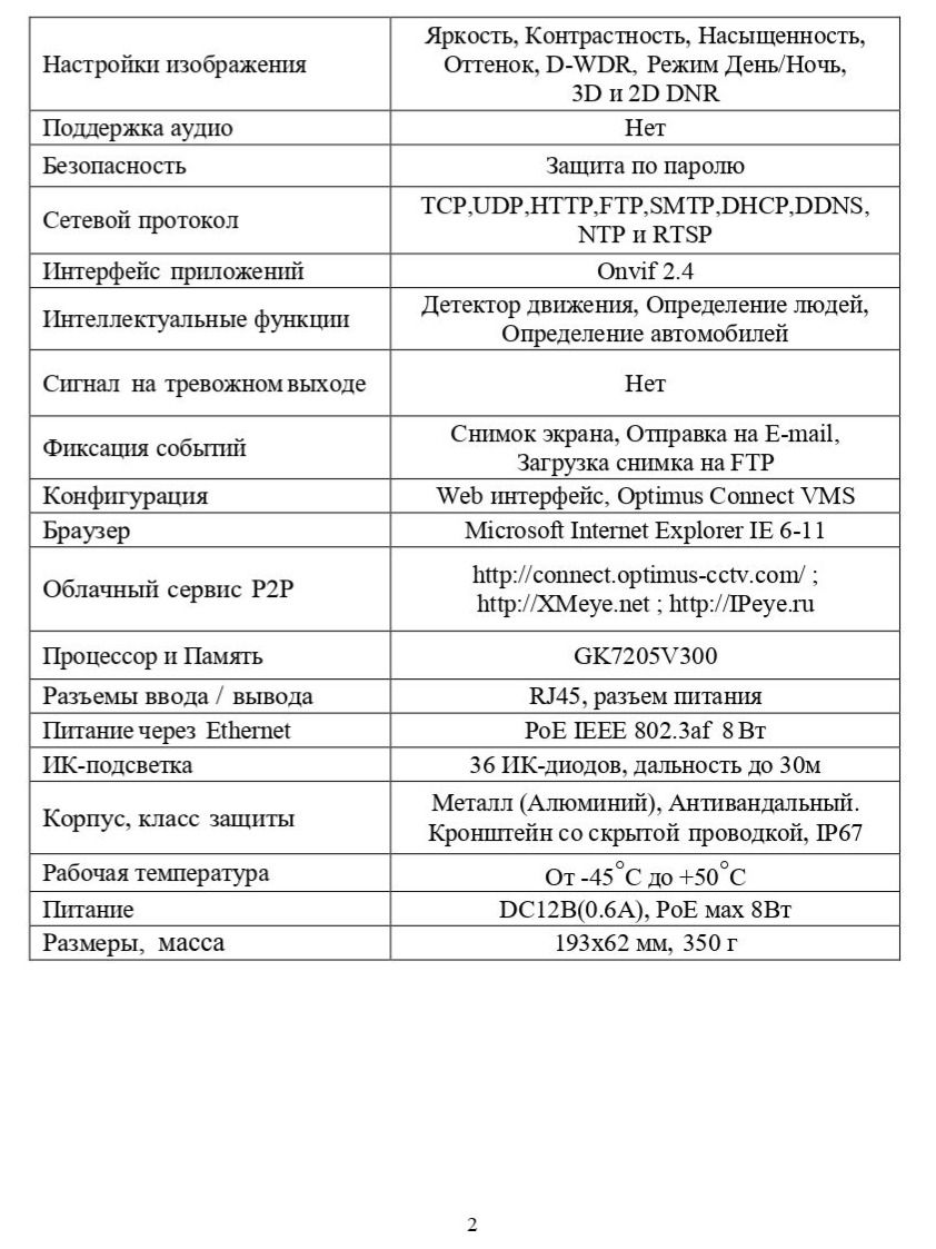 Камера выполнена в металлическом антивандальном корпусе степенью защиты IP67. Рабочая температура от -45° С до +50° С.