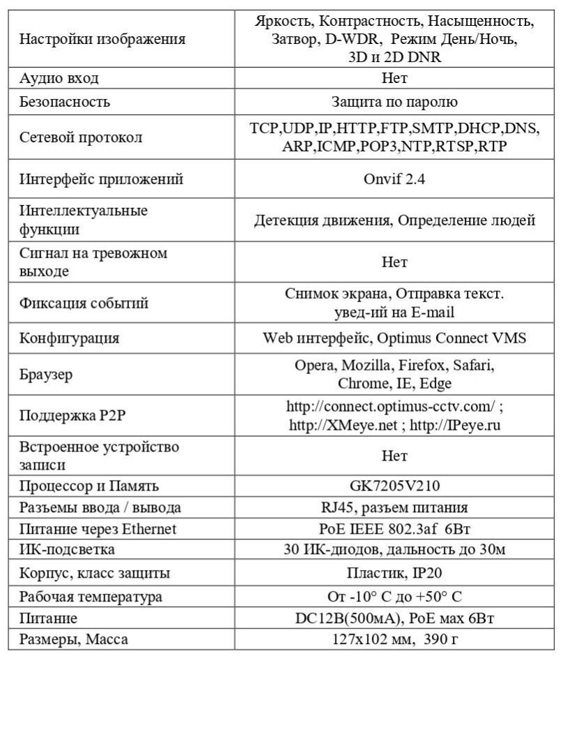Скорость отображения Основной поток: 2304*1296@20fps, 1920*1080, 1280*720@25fps; Дополнительный поток до 25к/с@800x448/704х576/640x360/352х288