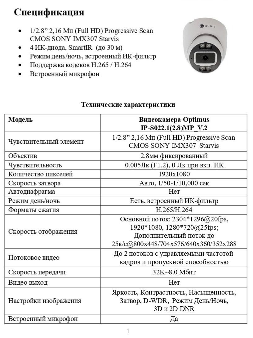 Видеокамера Optimus IP-S022.1(2.8)MP_V.2