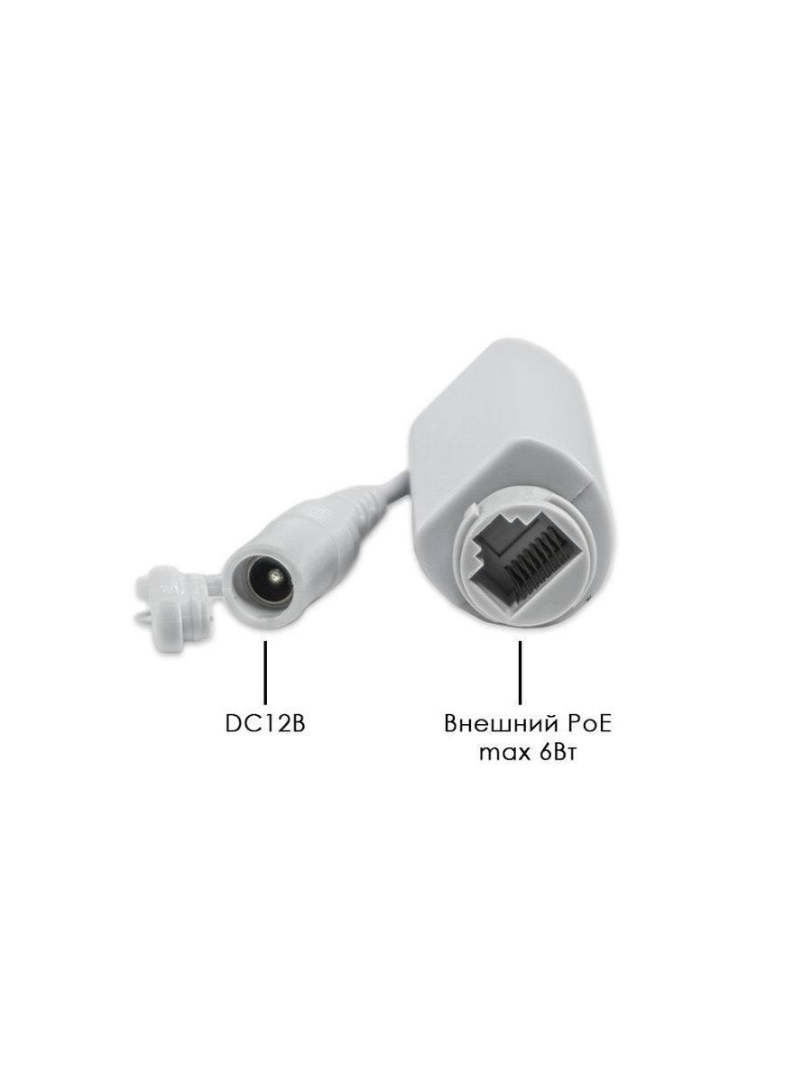 Питание DC12В(450мА), Внешний PoE max 6Вт (на кабеле)