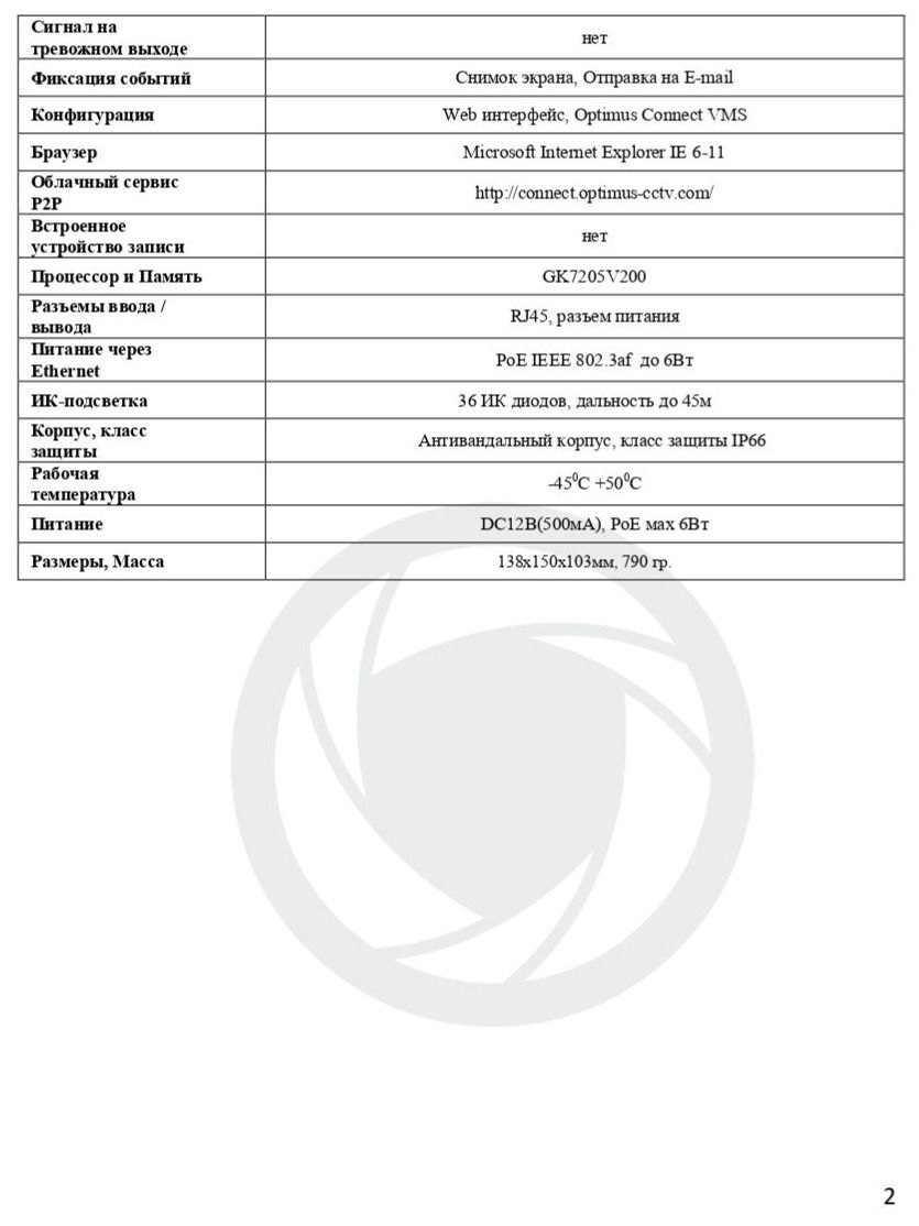 Камера выполнена в металлическом корпусе. Рабочая температура от -45° С до +50° С.