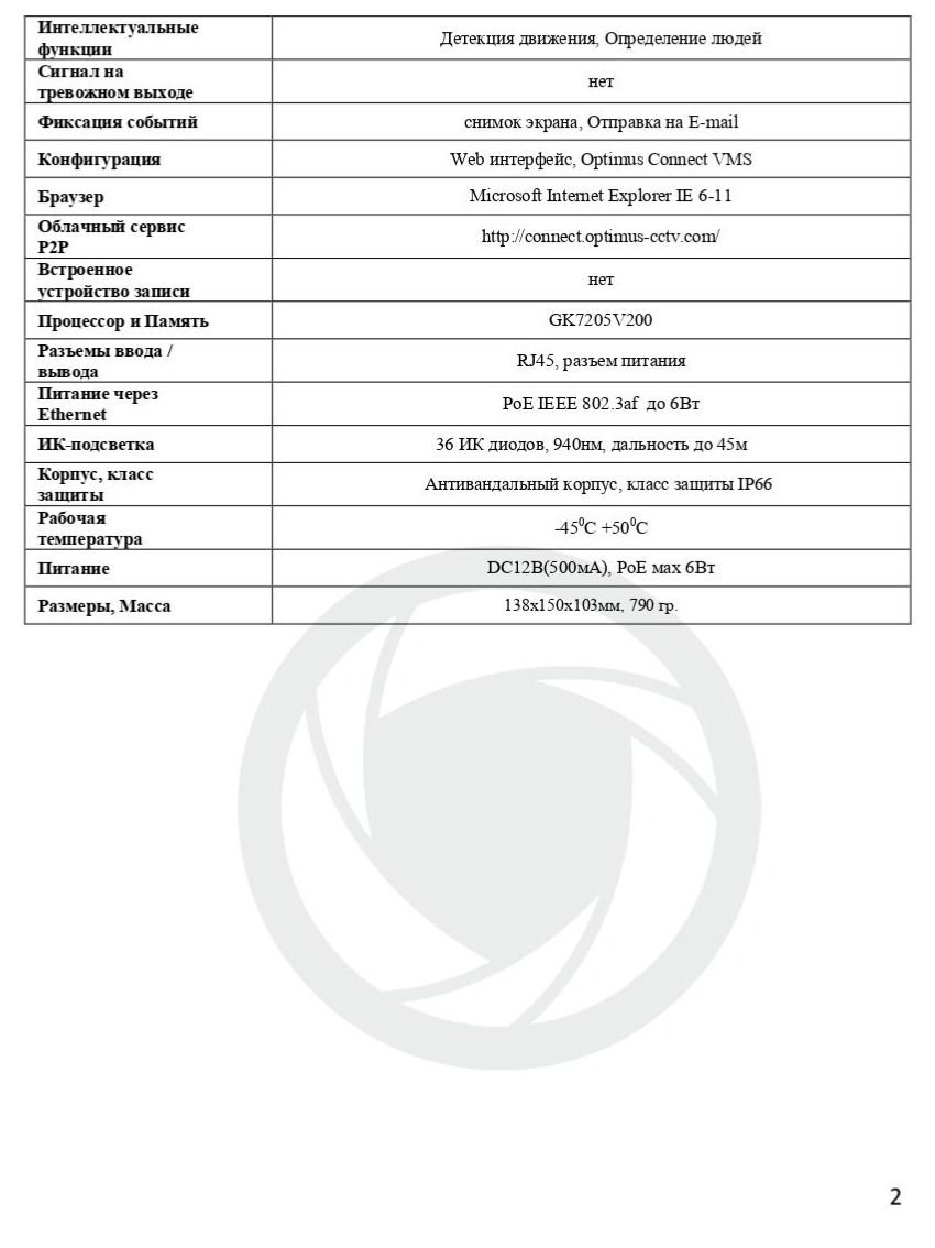 Видеокамера Optimus IP-S042.1(2.8)PI