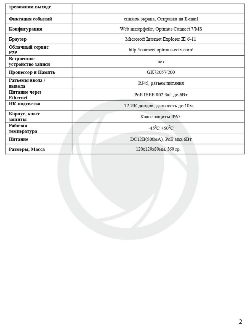 Скорость отображения Основной поток: 2304*1296@20fps, 1920*1080, 1280*720@25fps; Дополнительный поток до 25к/с@800x448/704х576/640x360/352х288