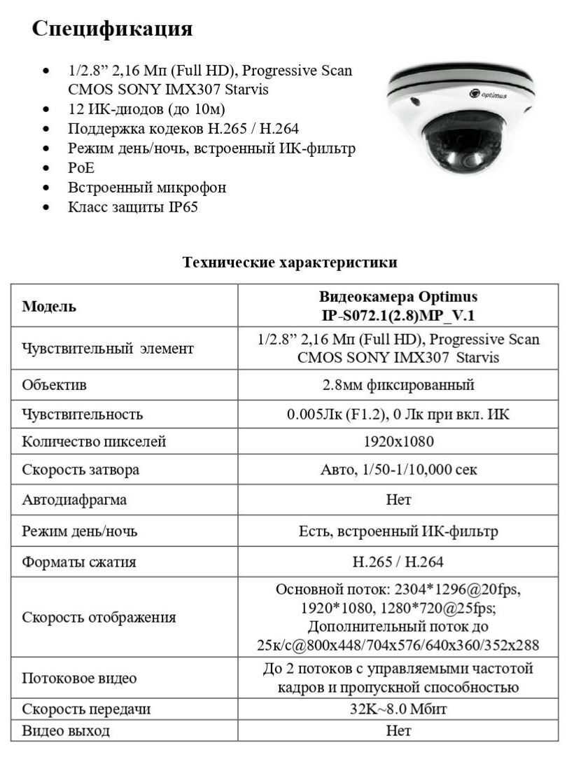 Видеокамера Optimus IP-S072.1(2.8)MP_V.1