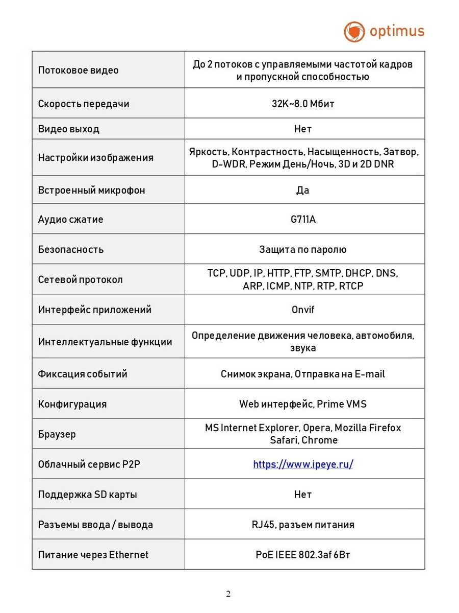 Видеокамера Optimus Prime ECO IP-012.1(2.8)MP
