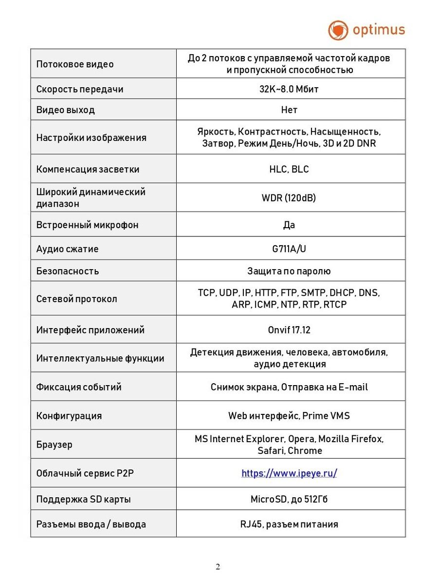 IP-видеокамера Видеокамера Optimus Prime IP-012.1(2.8)MPC создана на основе 1/2.8" 2.0M Progressive Scan CMOS
