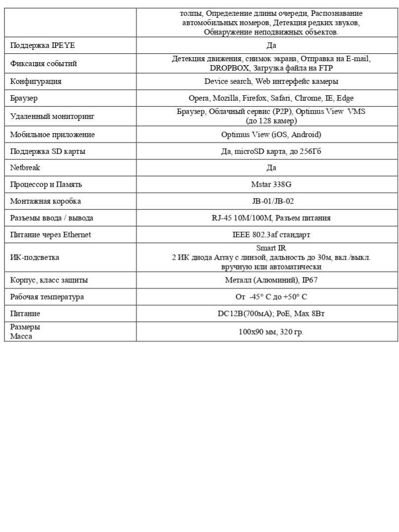 Интеллектуальные функции Распознавание лиц, Обнаружение людей и транспорта, Вторжение в периметр, Пересечение линии, Подсчет пересечений, Тепловая карта, Обнаружение плотности толпы, Определение длины очереди, Распознавание автомобильных номеров, Детекция редких звуков, Обнаружение неподвижных объектов