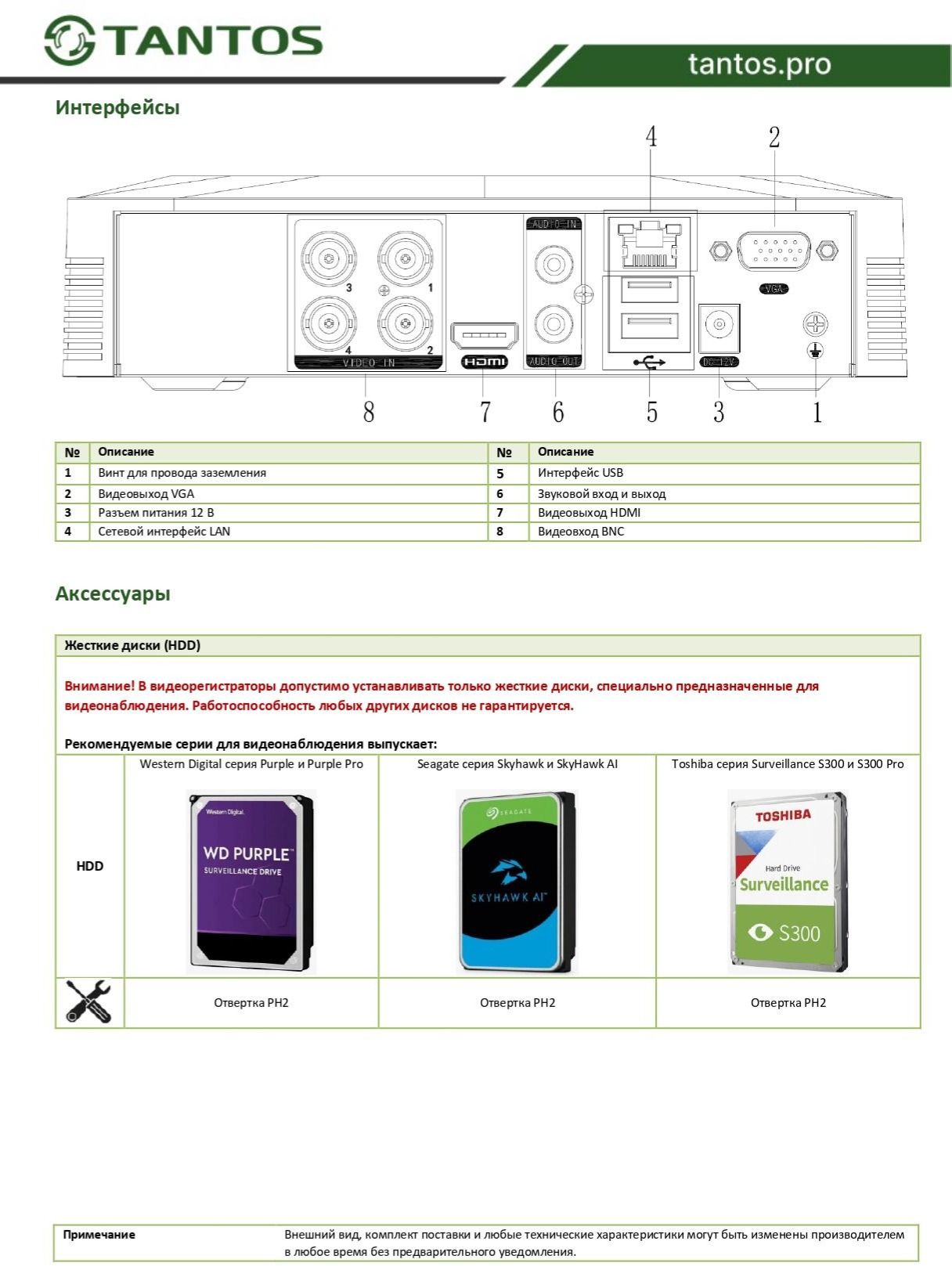 Примечание Комплект поставки и любые технические характеристики могут быть изменены производителем в любое время без предварительного уведомления.