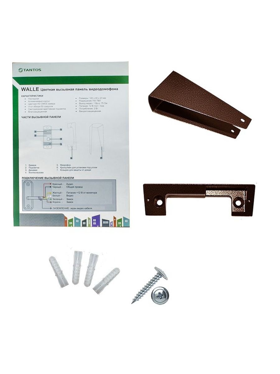 TANTOS WALLE (медь) – классическая вызывная видеопанель домофона. Выполнена в вандалоустойчивом металлическом корпусе под медь. В комплект поставки входят кронштейн для установки под углом (очень удобно при установке рядом с дверью), а также козырек для защиты от дождя. Камера с разрешением 700 ТВЛ обеспечивает высокое качество картинки, качество звука также не вызывает нареканий. Вызывная панель WALLE также имеет встроенную белую светодиодную подсветку. Предназначена для накладного монтажа, схема подключения – стандартная четырехпроводная, совместима с большинством популярных на российском рынке домофонов. Вызывная панель WALLE – надежный выбор по оптимальной цене.