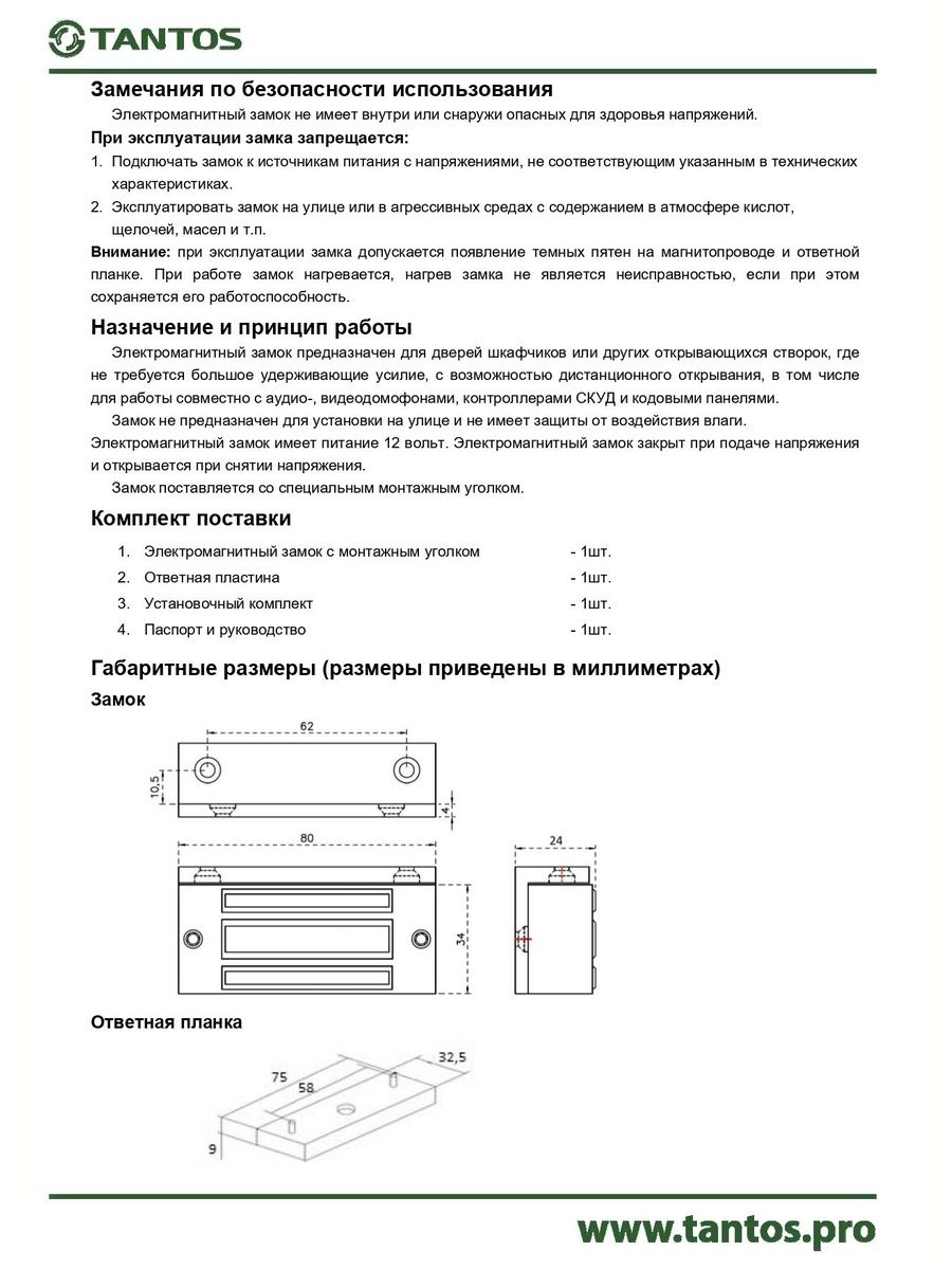 Размер ответной пластины: 75 х 32,5 х 9 мм