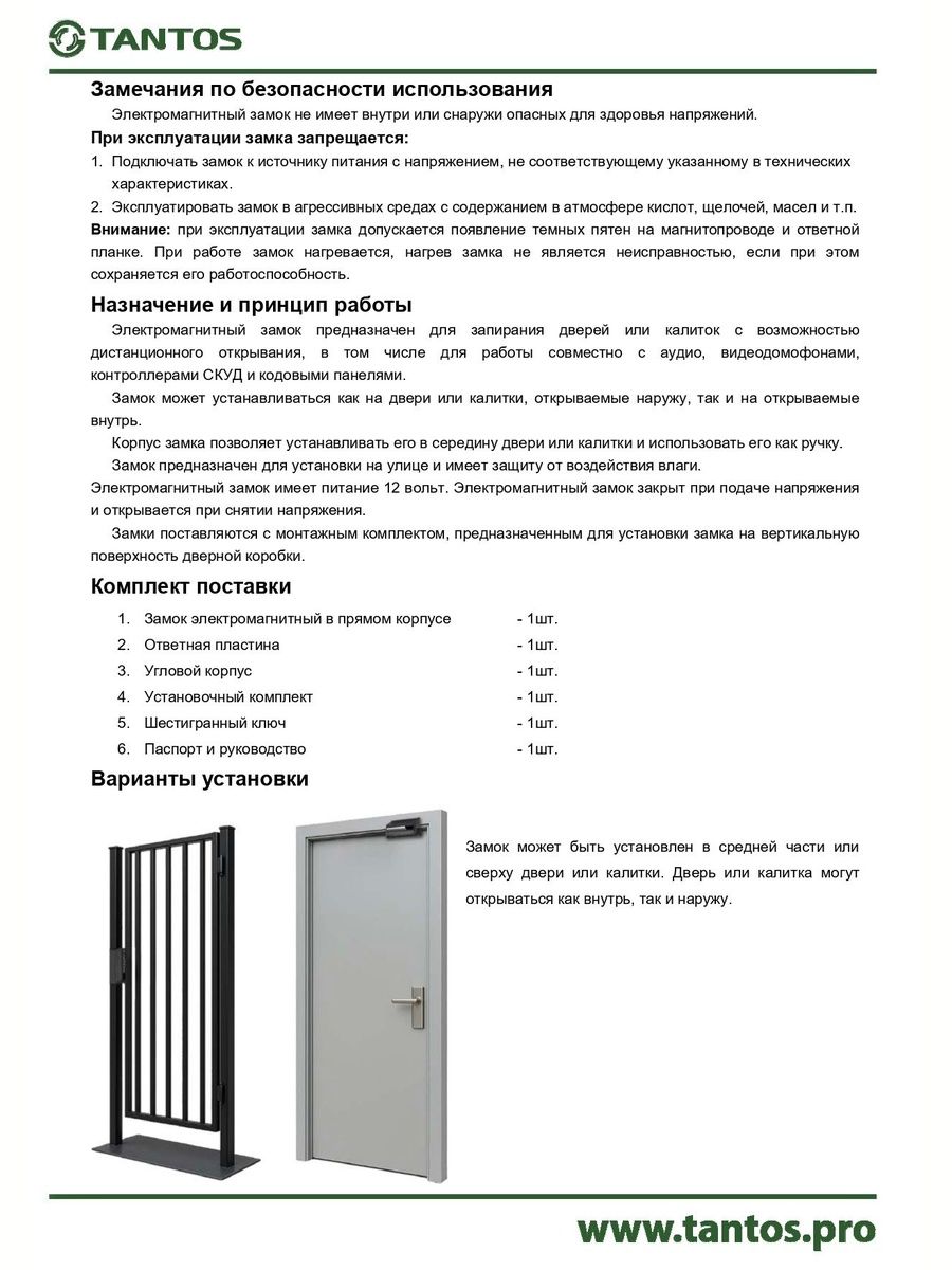 Электромагнитный замок предназначен для запирания дверей или калиток с возможностью дистанционного открывания, в том числе для работы совместно с аудио, видеодомофонами, контроллерами СКУД и кодовыми панелями.