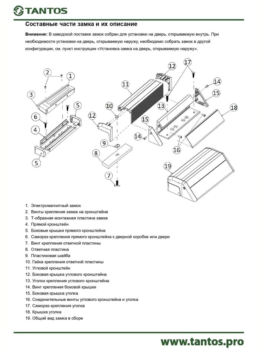 Замки поставляются с монтажным комплектом, предназначенным для установки замка на вертикальную поверхность дверной коробки.