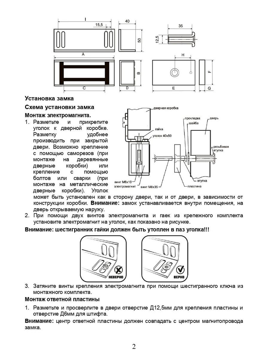 - Замок не предназначен для установки на улице и не имеет защиты от воздействия влаги.
