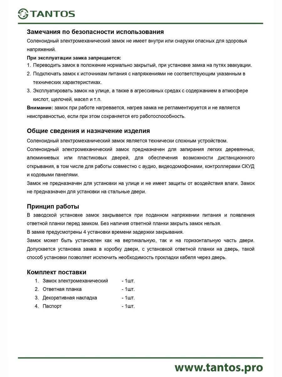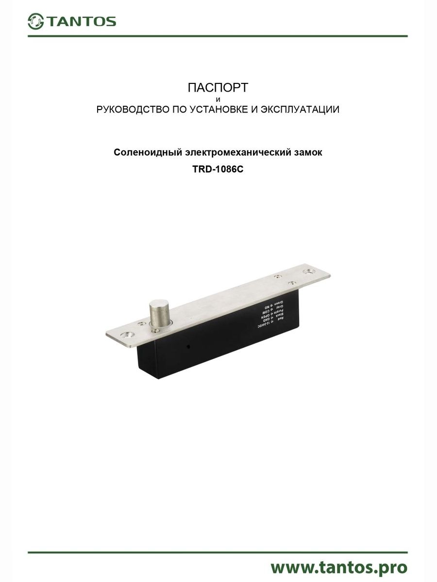 TANTOS TRD-1086C - соленоидный электромеханический врезной замок. Предназначен для запирания дверей с возможностью их дистанционного открывания с помощью контроллеров систем контроля доступа, домофонов, кодонаборных панелей и т.п. Устанавливается в коробку двери. Подходит для деревянных или пластиковых дверей.